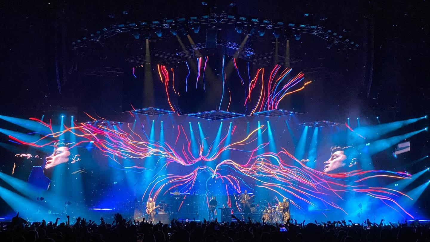 這次演唱會的的設計創(chuàng)意靈感來自于過去的專輯巡回演唱會,每首歌曲的燈光效果都以外形和內容為特色,創(chuàng)造出驚艷的視覺效果。在舞臺設計上依據觀眾視線角度進行設計,確保每個角落的觀眾都能感受同樣令人驚嘆的視覺內容。 為此設計了五個懸浮的三米視頻立方體,光束效果從內部照出,結合舞臺10米x9米的LED墻來打造巨幕電影版的視覺沖擊力。 Avolites Synergy 功能與Notch效果結合使用,渲染出震撼的視頻效果。
